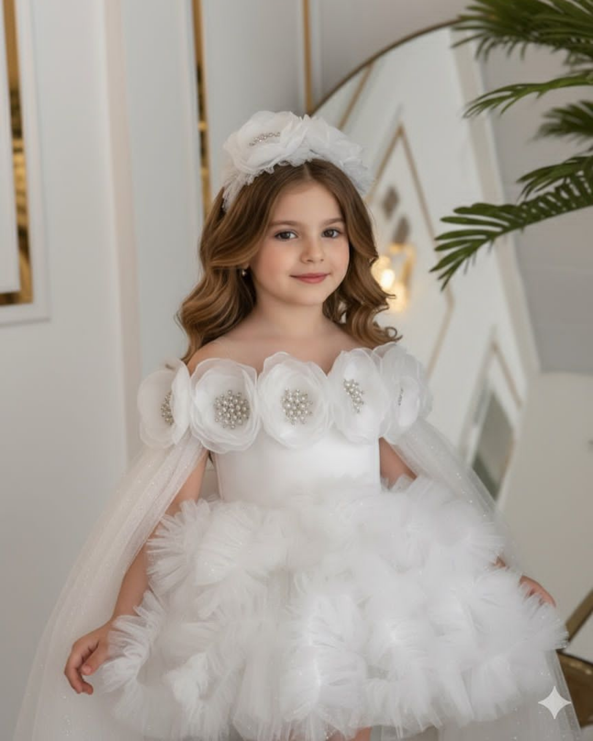 A beautiful rose-petal textured dress perfect for birthdays and photoshoots. Comes with matching shoes for ages 1 and 2 years only. Soft, stylish, and made to make your little one shine.
