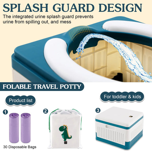 Portable Potty for Toddler Travel, Foldable Travel Potty Training Toilet Seat for Kids Boys Girls with 30 Disposable Bags