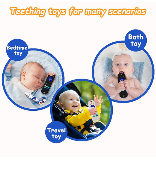 2-Pack Silicone Baby Teething Toys – Remote Control Shape, for 6-12 Months (Black & Grey)